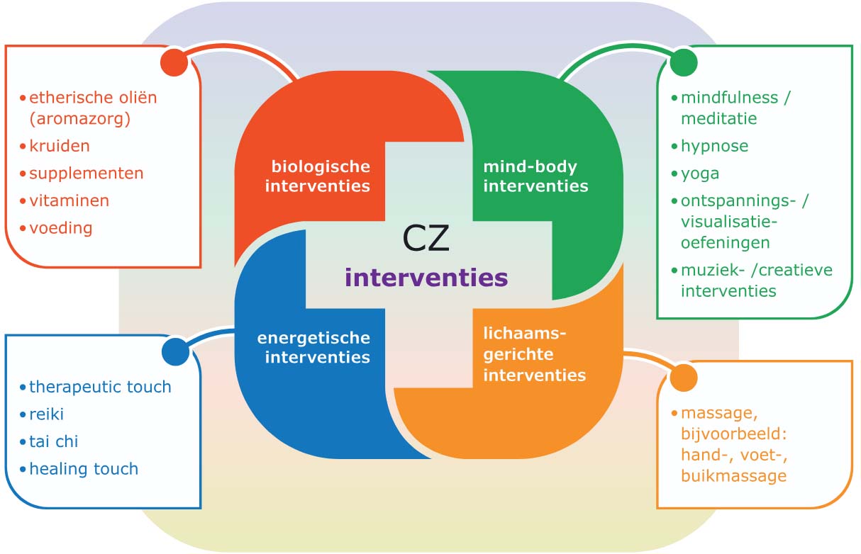 Complementaire zorg is aanvullende zorg op de reguliere medische behandeling of verpleging. Het is geen vervanging, maar een aanvulling die het welzijn van je patiënt kan vergroten. Denk bijvoorbeeld aan massage, aquazorg, aromazorg, luisteren naar muziek, mindfulness en ontspanningsoefeningen. Deze zorgvormen kunnen helpen bij het verminderen van klachten zoals pijn, angst, misselijkheid, slapeloosheid en onrust.